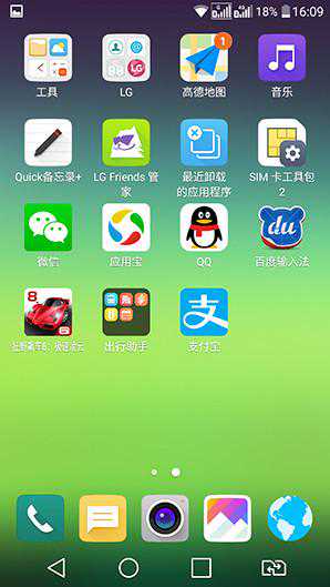 最后,我们再来聊聊LGG5的系统。作为一款2016年的旗舰新品,LGG5搭载了基于深度定制全新UI,相比前作LGG4的系统UI变化巨大!它摒弃了Android智能手机传统的界面布局,取消了独立的桌面和应用程序列表界面,改用国内用户熟悉的一体化桌面设计,所有图标均位于手机桌面上,减少了用户的二级菜单操作,有效提升了效率。