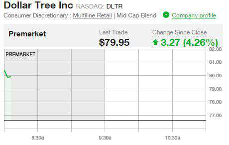 DollarTree(DLTR)发布第四财季财报,每股收益为1.39美元,好于预期值1.32美元,营收同比增5%至56.4亿美元,好于预期值56.2亿美元。
