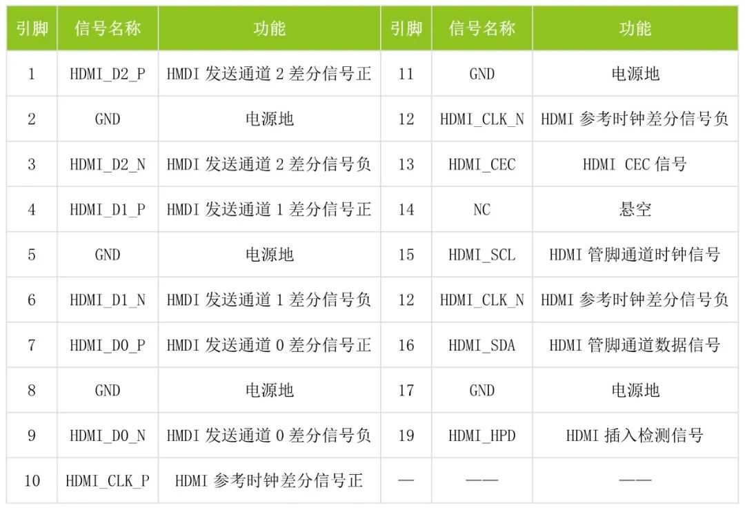 M3568-EV-Board将1路标准HDMI显示信号引出,数字信号通讯标准HDMI连接器,连接器如图3所示,信号定义如表格2所示。