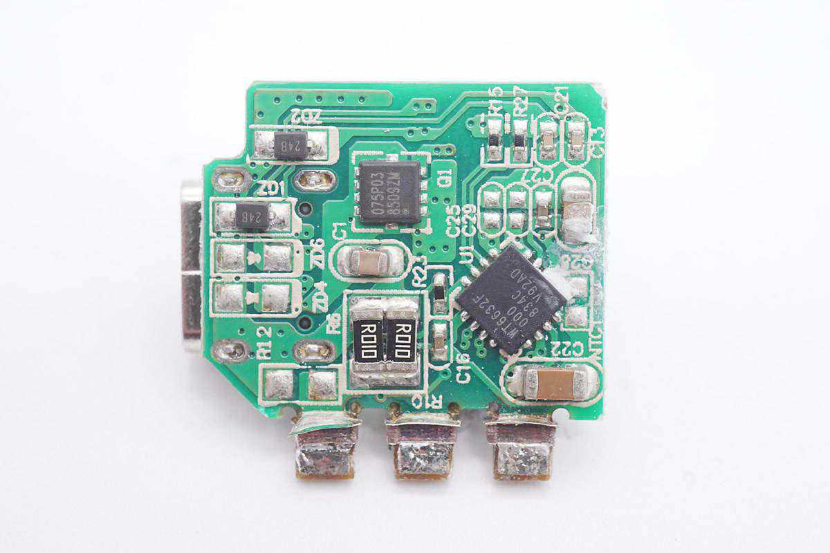 协议芯片来自Weltr伟诠,型号WT6632F,这款芯片已经通过了认证。作为一款高度集成的USBPD控制器,它支持规范,支持宽操作电压范围从3V到30V,为充电器,移动电源等输出设备设计。