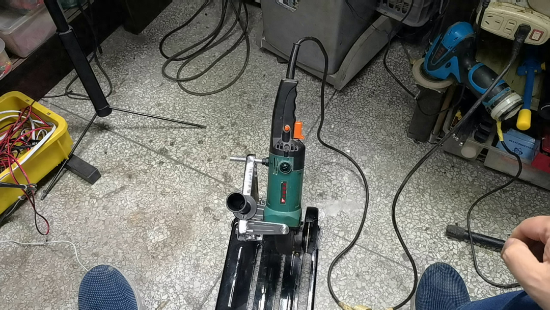 将可控硅调压模块安装在一个塑料盒子里。增加一个控制开关,用于切断电源。这个旋钮可以调整交流电导通角。进而控制输出电压。下面就测试一下调速的效果。我们知道,现在这个角磨机是一个串级交流电机,相当于一个感性负载。现将调压器打到最小,可以看到此时角磨机已经旋转起来。速度较慢。利用角磨机本身的开关锁定装置,将角磨机锁定在打开状态。调整调压器旋钮,可以提高角磨机的转速。测试了角磨机切割电路板的功能。验证了这个调压器可以控制这个电机负载。