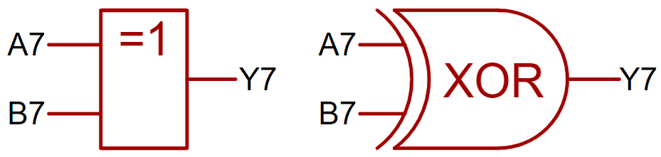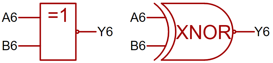 图2-6-1同或门逻辑符号(矩形国标符号与形状特征符号)