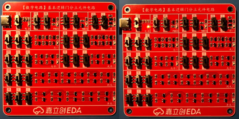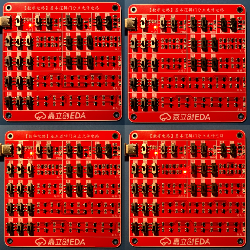 并分享电源输入电路、PMOS和NMOS电路、与门电路、或门电路、非门电路、与非门电路、或非门电路、同或门电路、异或门电路的原理图、物料清单与PCB。文末还有焊接说明与上电调试的测试成果。