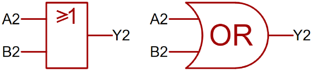 图2-2-1或门逻辑符号(矩形国标符号与形状特征符号)