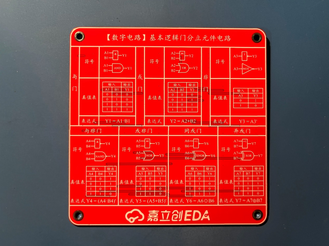 顶面绘制完成后,在背面放置丝印标识各逻辑门的符号,真值表和表达式,清晰各个逻辑门的逻辑运算关系,方便理解学习。