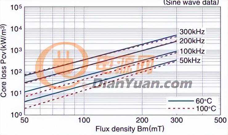备注:对于反激变压器,查询Pcv图表时,Bm为Bac的一半。
