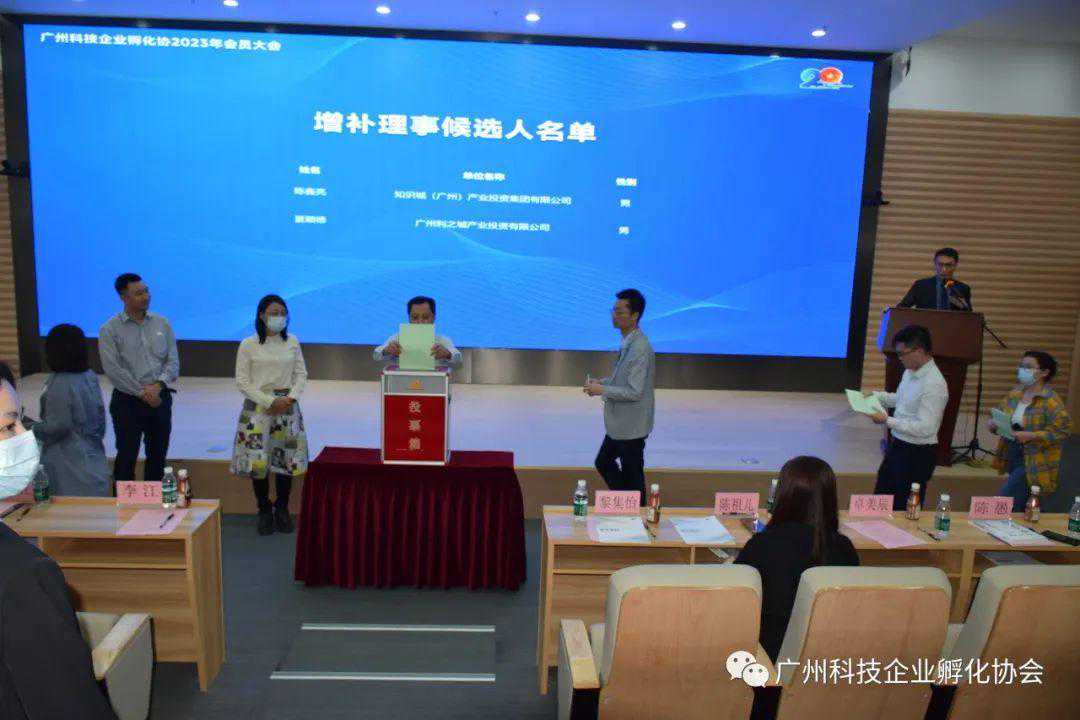 根据孵化协会《章程》,全体参会会员代表对以上报告、及相关事宜进行了审议,并举手表决通过。另外,按增补理事选举流程,会上通过无记名投票表决方式,选举增补了知识城(广州)产业投资集团有限公司和广州利之城产业投资有限公司共2家新理事单位,并由陈愚会长为以上2家理事单位授予理事单位牌匾。