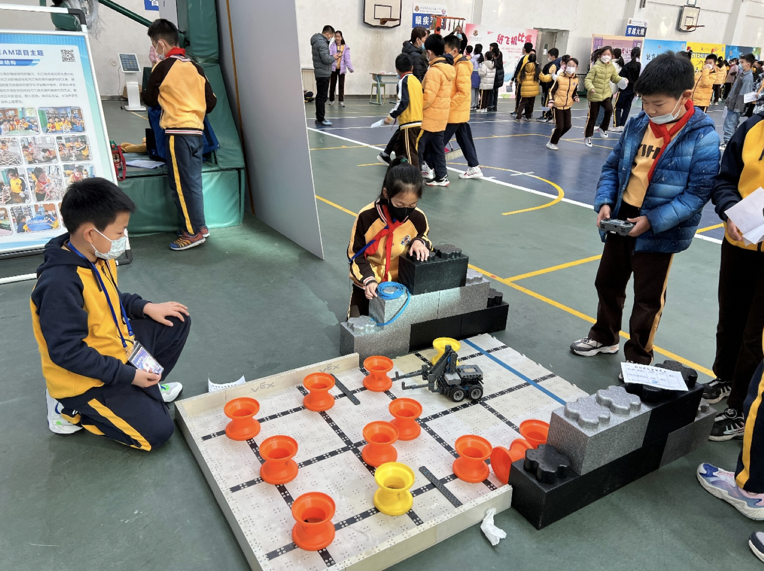 科技节嘉年华现场,丰富多彩的科技项目展示和体验活动让孩子们兴致高昂。包括机器人格斗、3D打印机、VEXIQ表演,以及智能魔方大比拼、UGOT机器人竞赛、大疆机甲大师、眼疾手快、穿越火线、乐高搭建等十余种体验活动。
