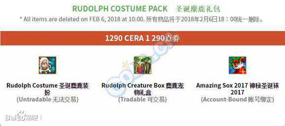 圣诞麋鹿装扮(无法交易),麋鹿宠物礼盒(可交易),神秘圣诞袜2017(账号绑定)