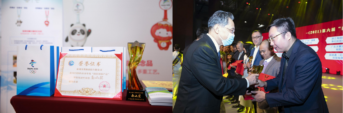 2021年11月27日,共和国勋章获得者,中国工程院钟南山院士亲自为深圳市奥映科技有限公司颁发了空净行业至高奖项“南山奖”;2021年,公司成为广东省室内环境行业协会常务副会长单位;2021年,公司前驱体缓释二氧化氯技术荣获“科技创新产品奖”。
