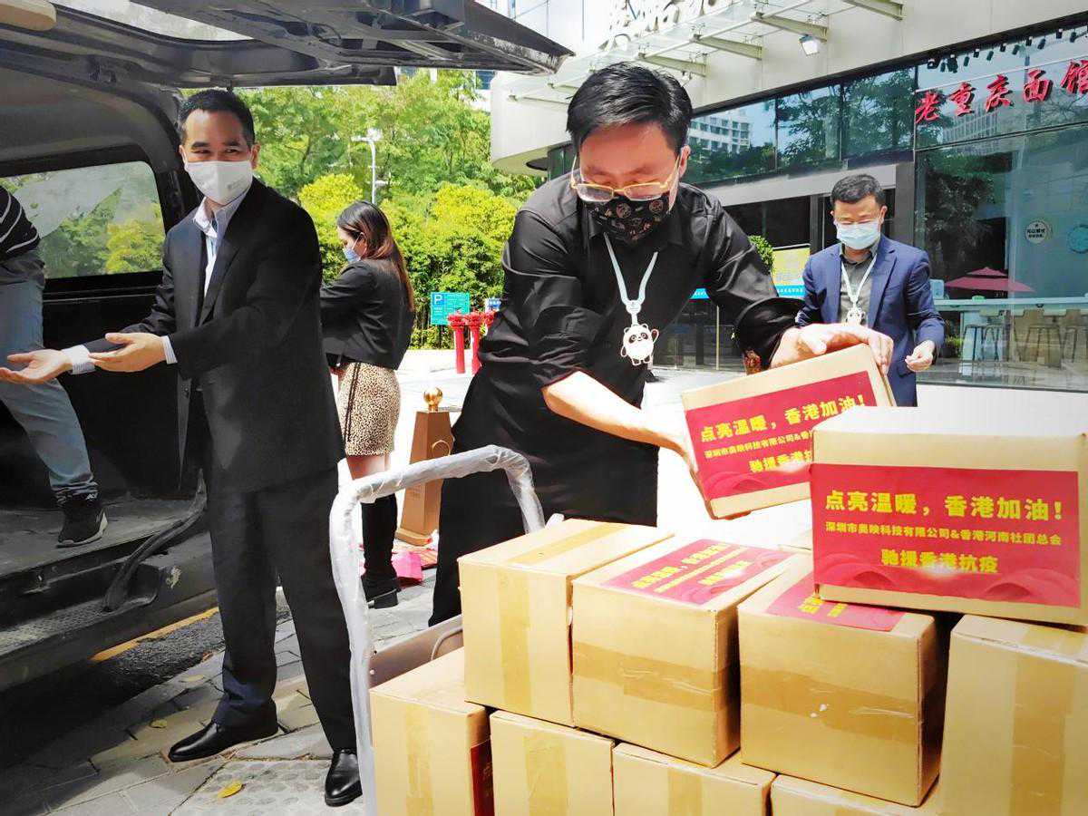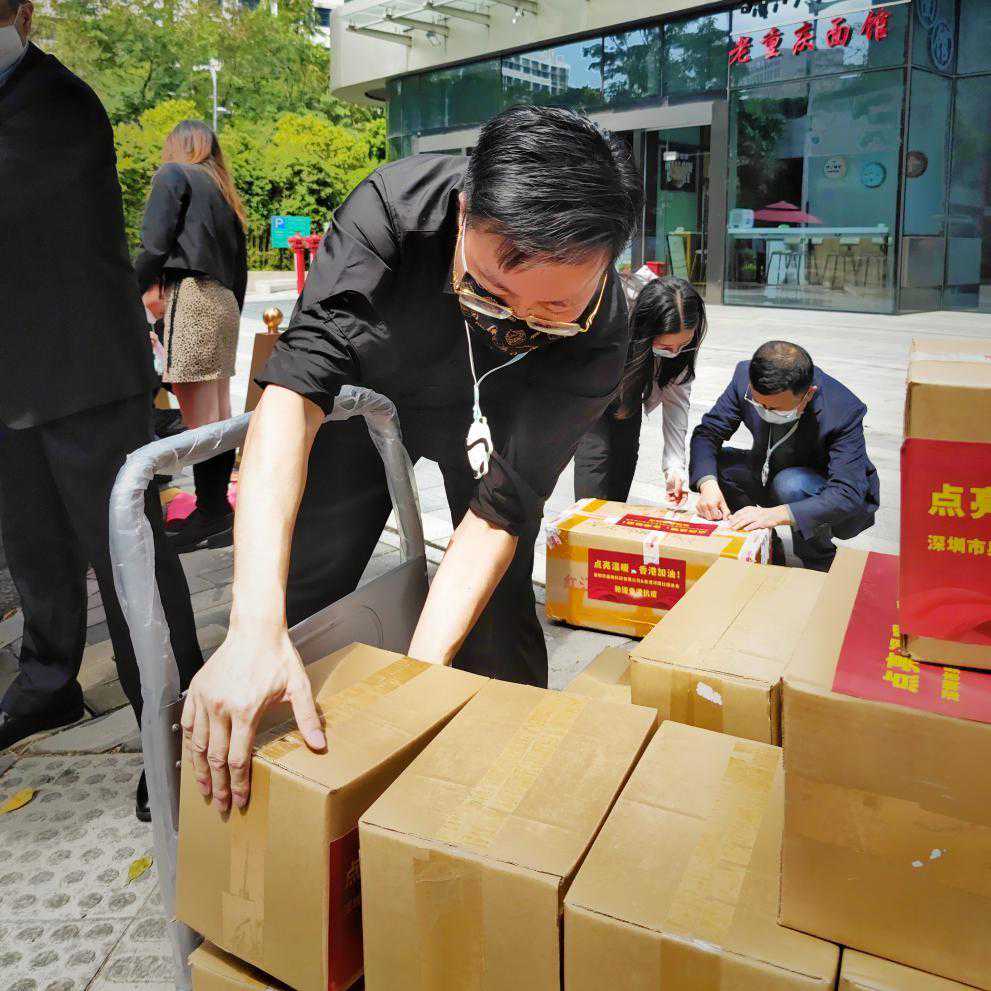 本次捐赠仪式在深圳市南山区举行,由香港河南社团总会会长姚康先生、副会长方芳女士、副秘书长刘勇先生等出席抗疫物资接收。