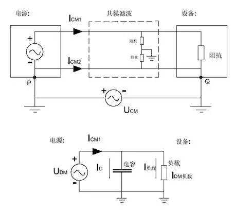 如图,我们可以看到共模的原理图。UPQ就是共模电压,ICM1ICM2就是共模电流。