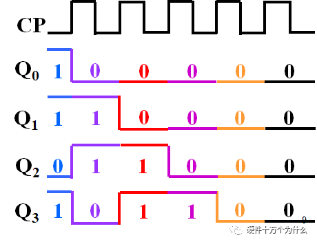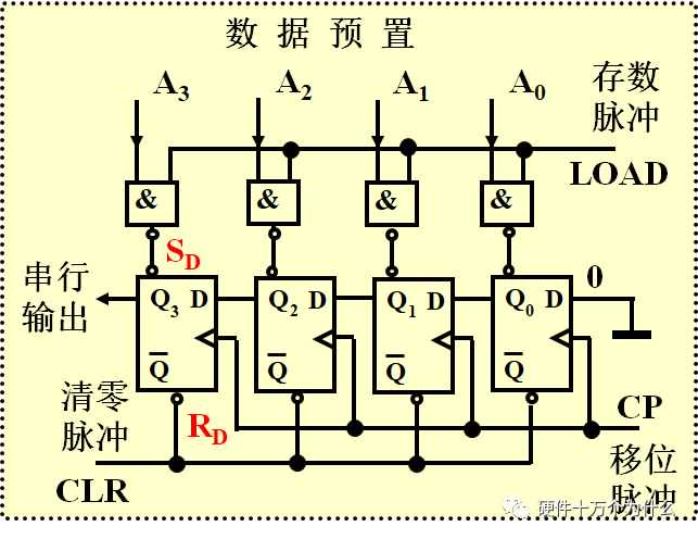 然后Q3的输出,是在每个时钟节拍,按照这个先后顺序,把A3A2A1A0串行的输出出去。
