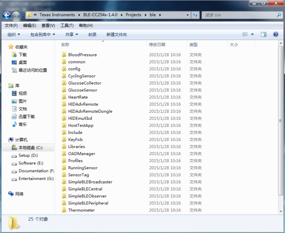 协议栈安装完成后默认在C盘,里面包含了例程和工具如下图。我们将在后面讲解: