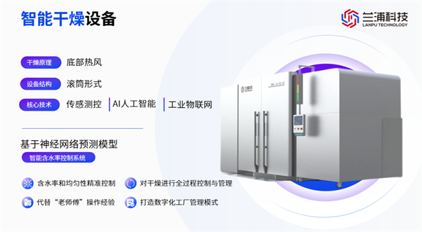 兰浦科技以传感测控、AI人工智能、数字化工厂、工业物联网和工业大数据等技术为依托,面向中药饮片客户创新研发出智能干燥设备,精准、均匀控制含水率于0.5%-2%间,智慧管理生产数据,为饮片保质期的质量管理实践提供干燥环节优化思路。