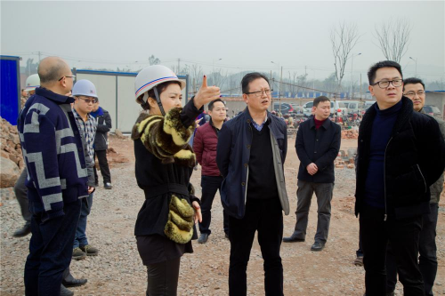 2016年12月21日下午,宜宾市市委常委副市长李学焦,临港经济技术开发区管委会副主任曹杨等领导在华洁公司董事长邓华、总经理邓超等人的陪同下,到四川华洁嘉业环保科技园项目工地视察施工进度。在场领导在视察了厂房、库房、办公楼等建筑的施工进度,观察了建筑物内部情况,表示满意,并作出指示,要求加快推进本项目一期施工及二期前期手续的办理,争取让本项目早日竣工投产,服务于社会。