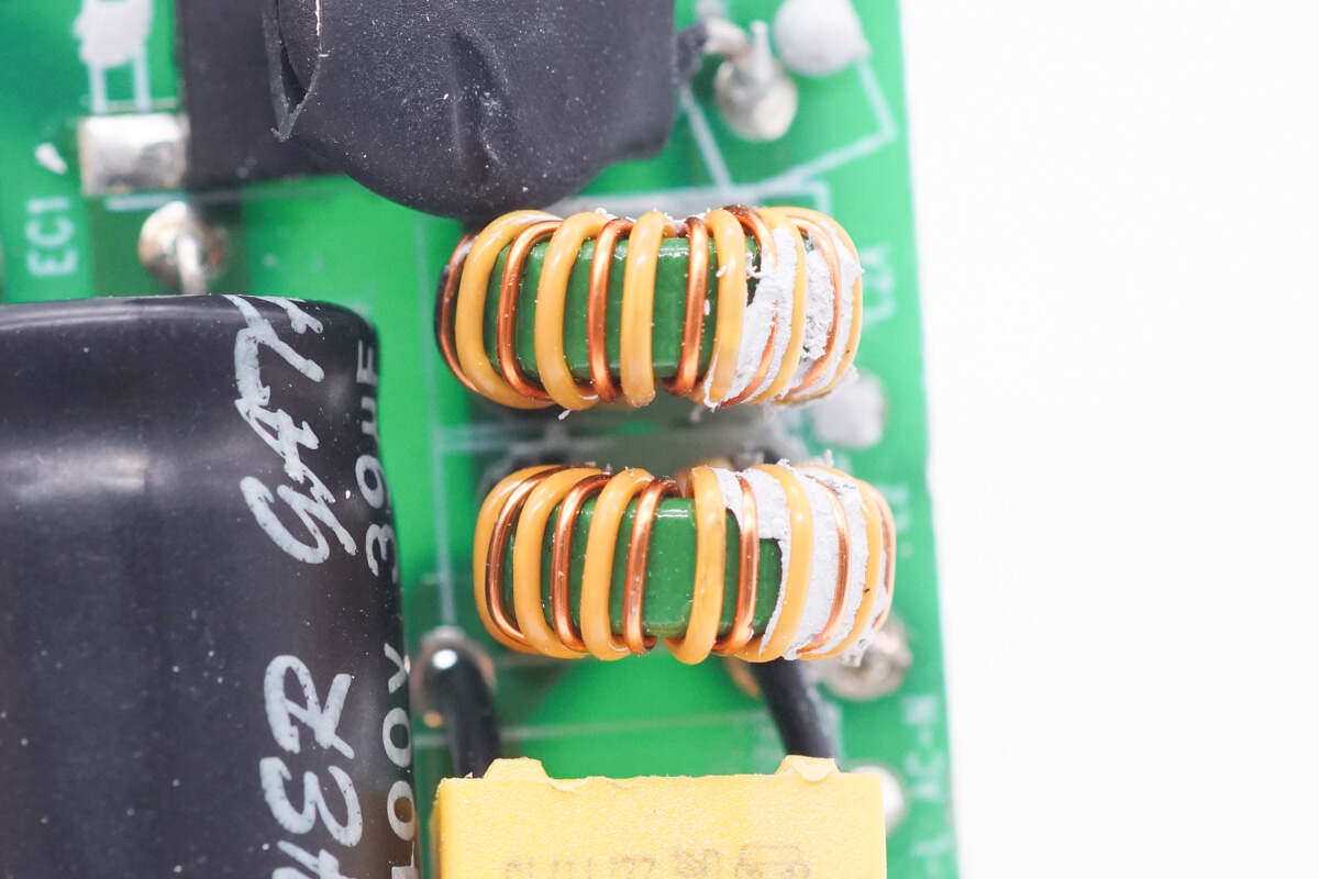 两颗共模电感采用漆包线和绝缘线绕制。