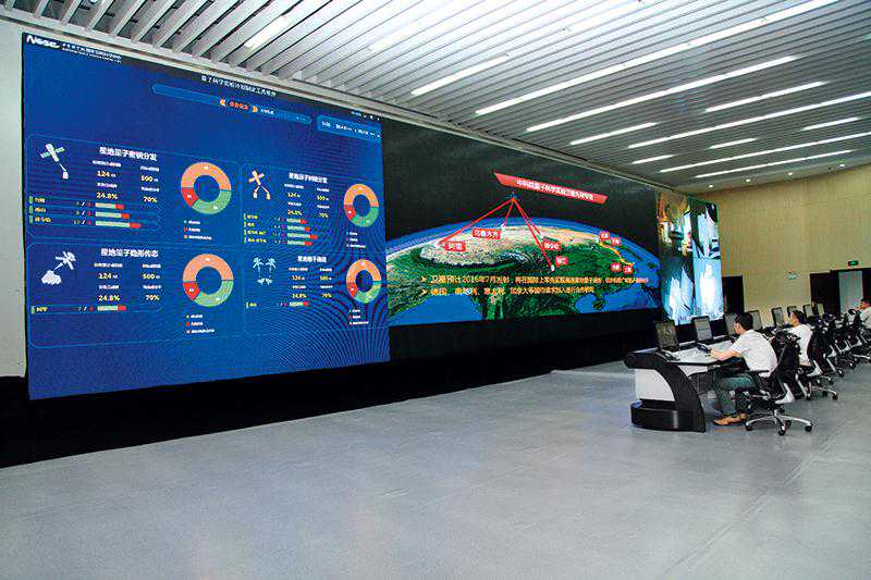 2016年12月9日,“墨子号”量子科学实验卫星与阿里量子隐形传态实验平台建立天地链路(合成照片)金立旺摄/本刊