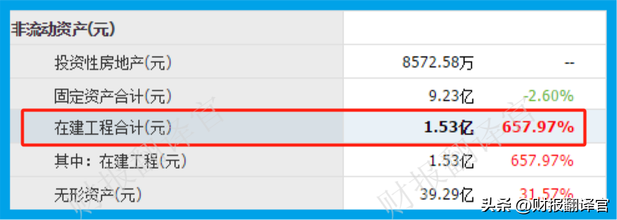 这里有个细节引起了翻译官的注意,那就是在报告期内,这家企业的在建工程出现了大幅度的增长。