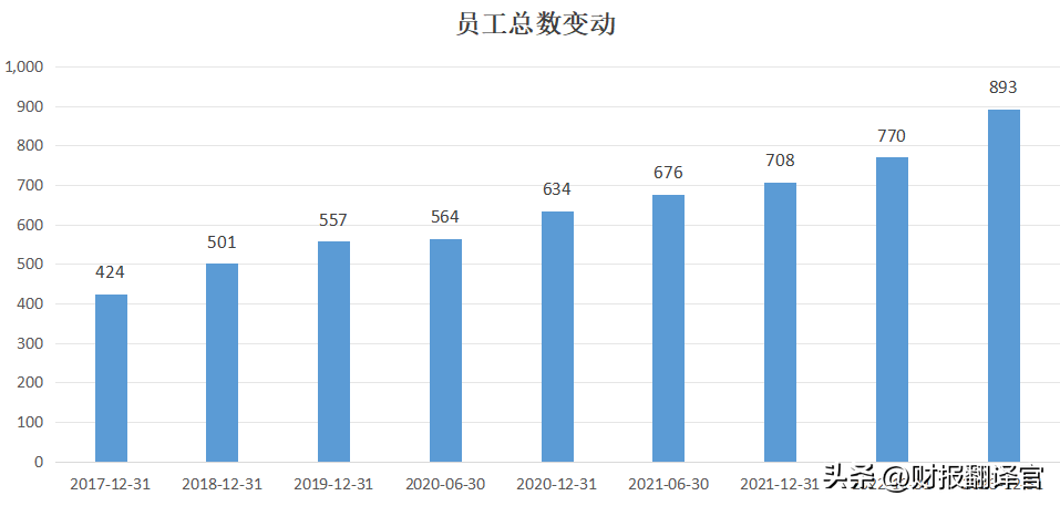 下图为这家企业的员工人数历年变动的情况,再次说明公司正处在高速的发展期。