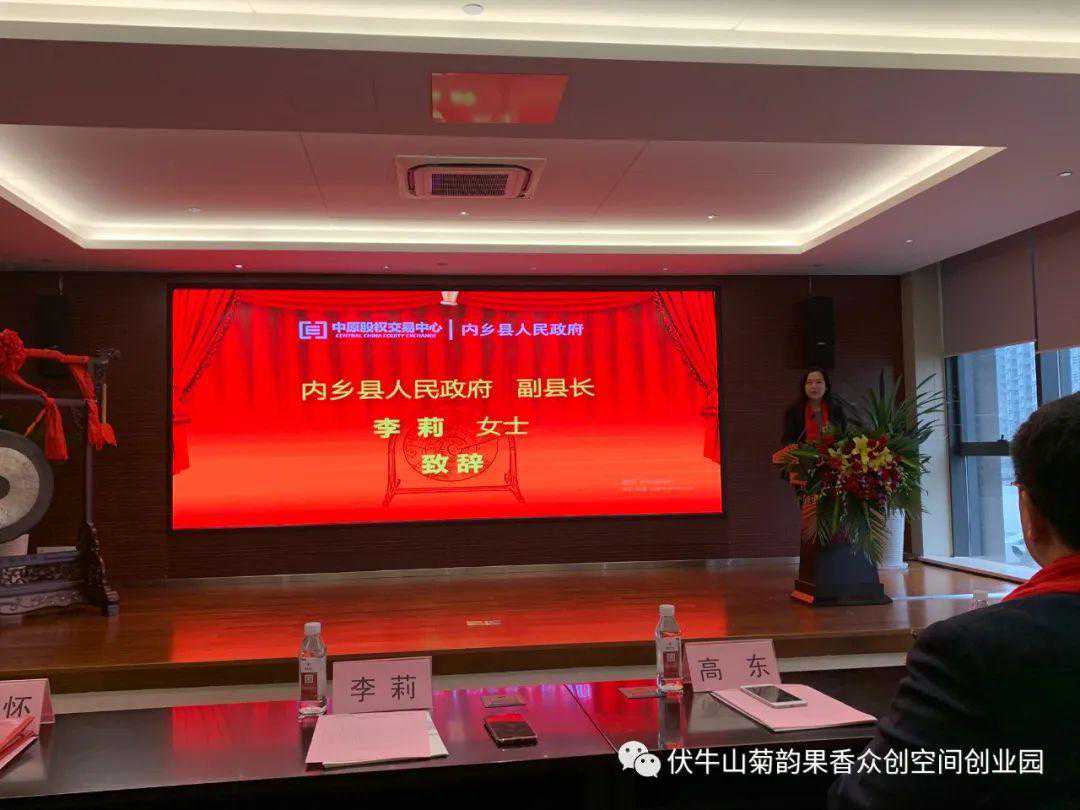 接着内乡县人民政府副县长李莉女士上台致辞,李莉女士从内乡县创新创业带动产业和经济发展的角度表达了对创新创业公司的祝福和支持。