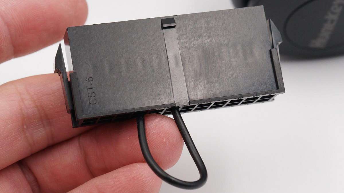 风扇供电插槽特写,插拔式设计组装方便,组装好后打胶加固,细节讲究。