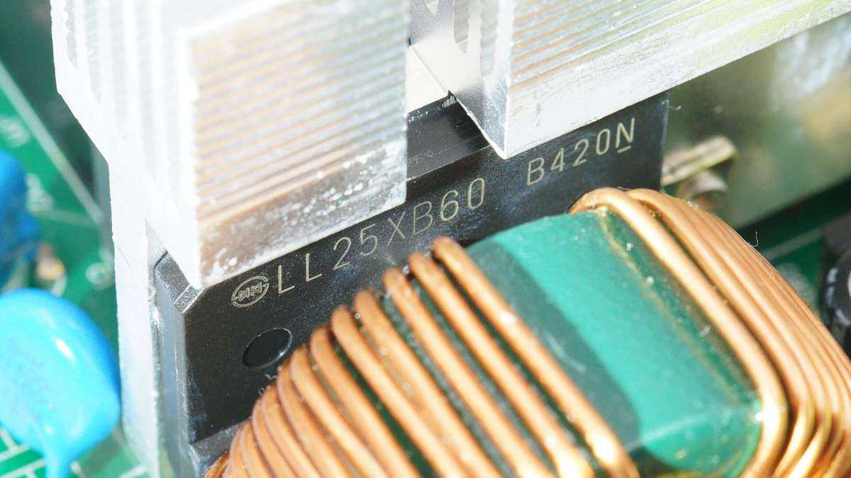 散热片另一面还有两颗LLC开关电源同步整流管,螺丝固定。