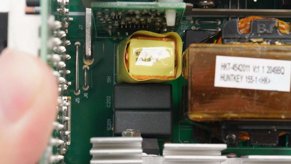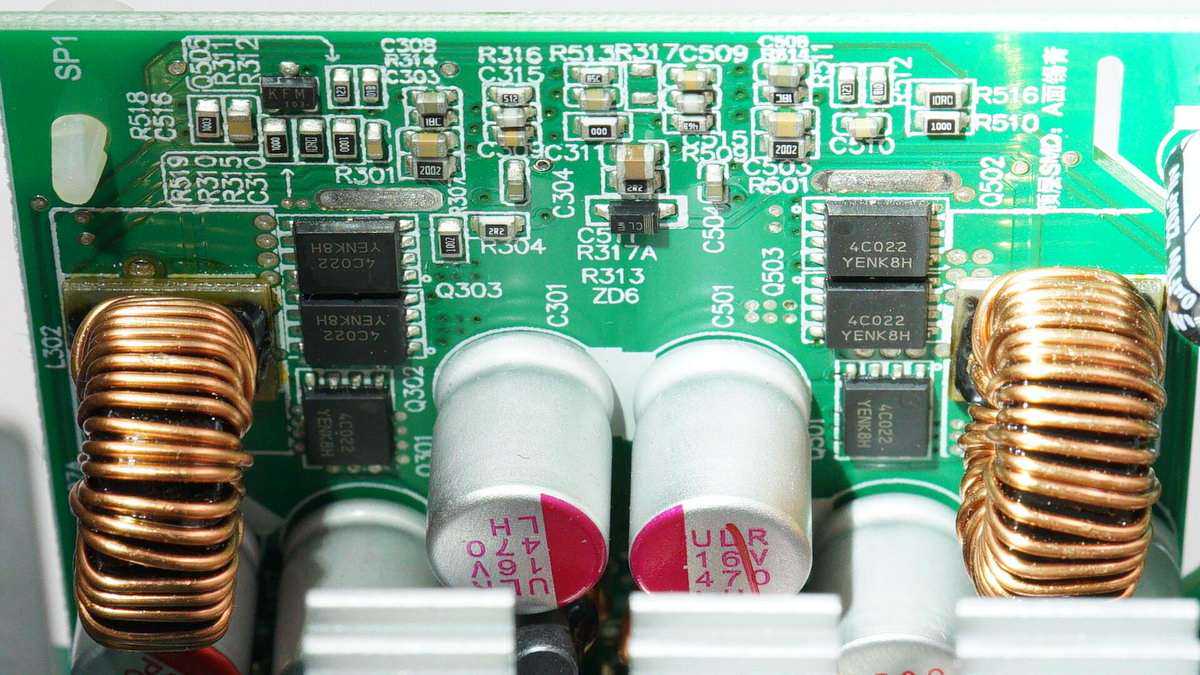 输出端小板正面主要设有接线插座和滤波电感和电容。