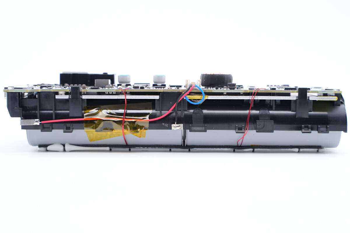 PCBA模块一览,电池通过点焊连接到PCBA模块,单体电压检测线通过排线连接,在PCBA模块上焊接两颗热敏电阻用于检测电池温度。