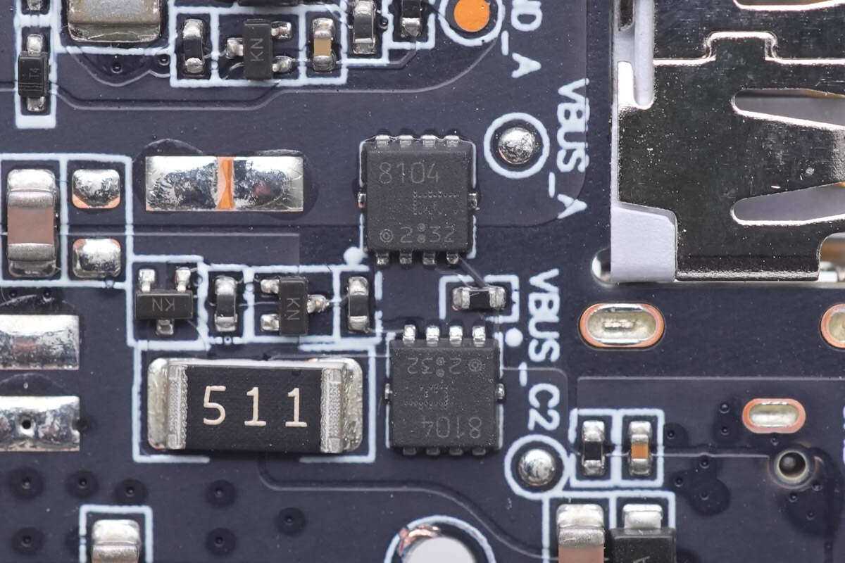 用于USB-C1接口的升降压电路特写。