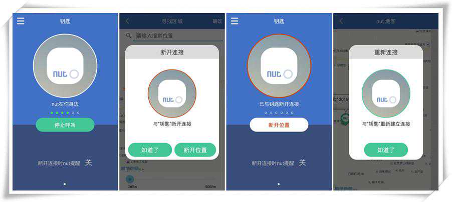 NUT的主要功能有2个,一个是通过手机呼叫贴片,或者通过贴片呼叫手机;一个是当贴片与手机离开一定距离时会报警。