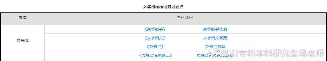 ◆专科起点本科学生统考科目:1.大学英语B2.计算机应用基础