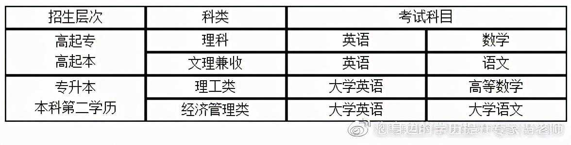 ▶️专科升本科入学考试科目:大学语文、大学英语。