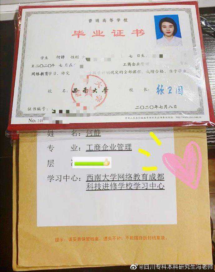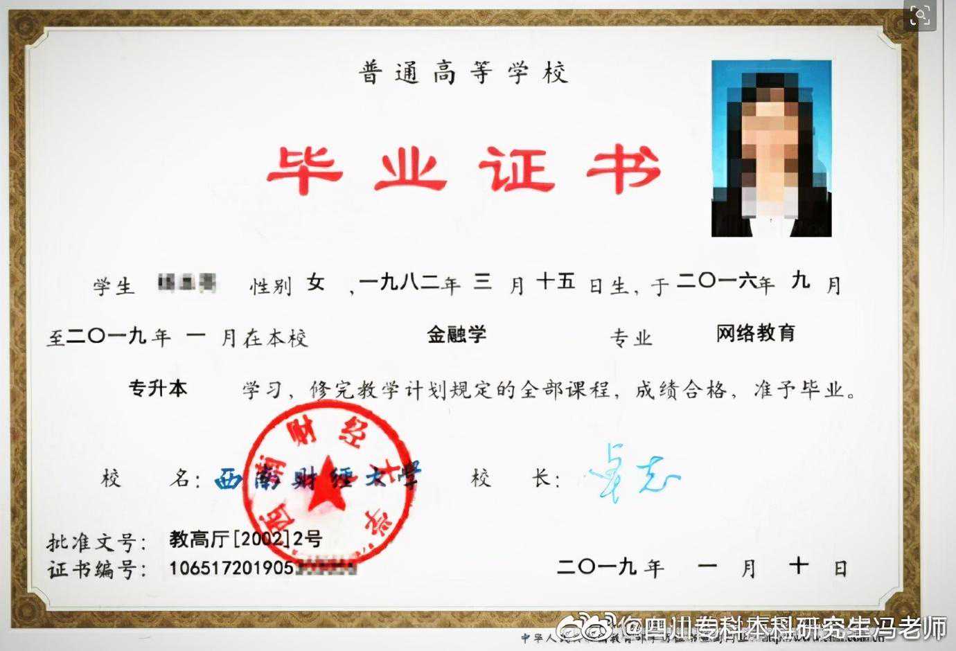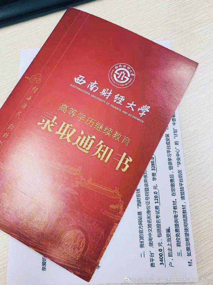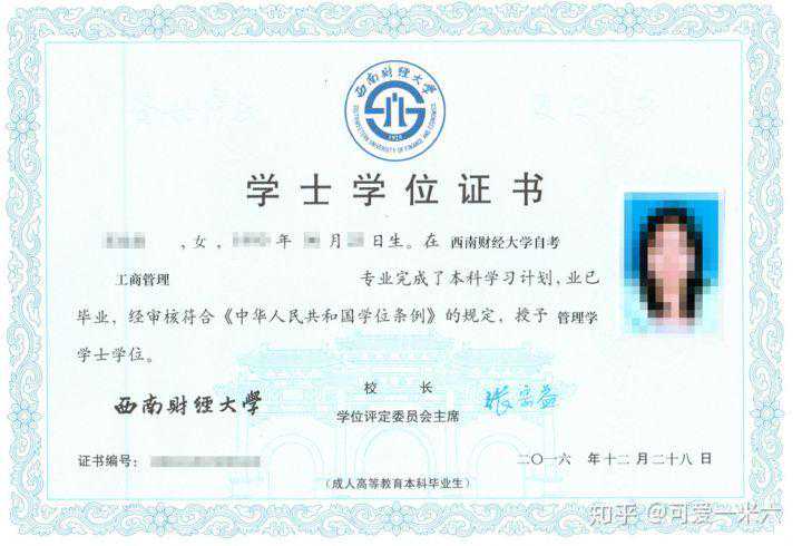①高中起点专科学生在学习期间取得教学计划规定的学分,由西南财经大学颁发成人类专科毕业证书,并进行电子注册,国家承认学历。