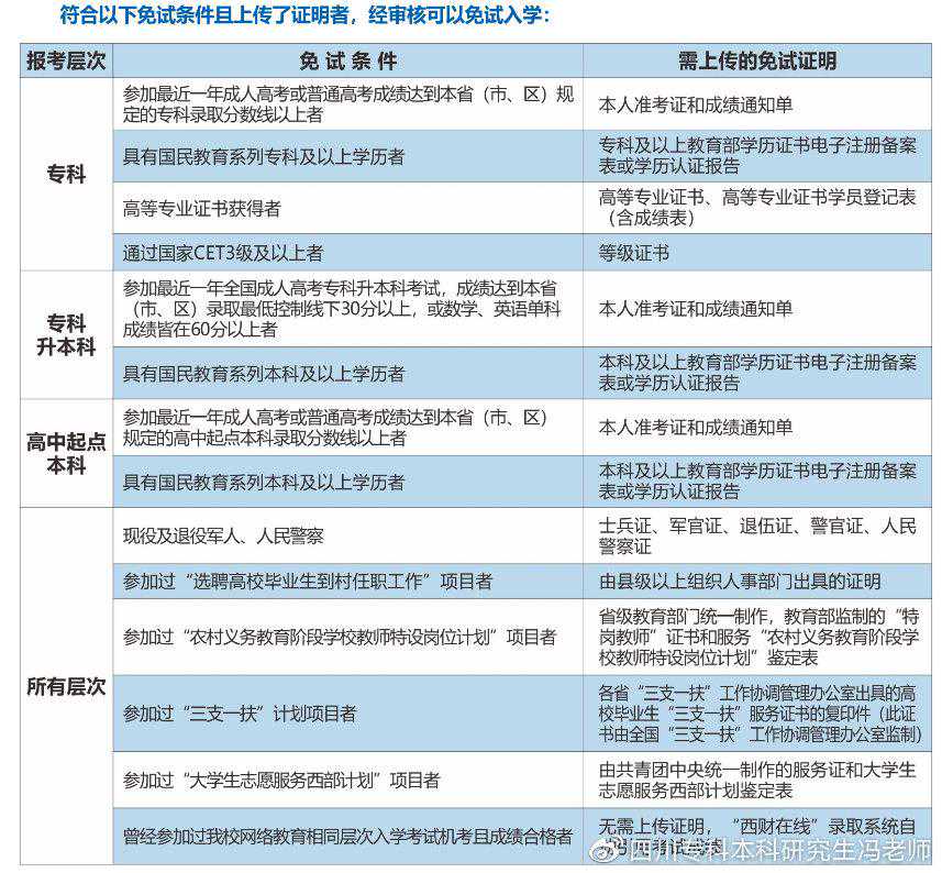 (1)已具有国民教育系列本科以上学历(含本科),可免考全部统考科目;