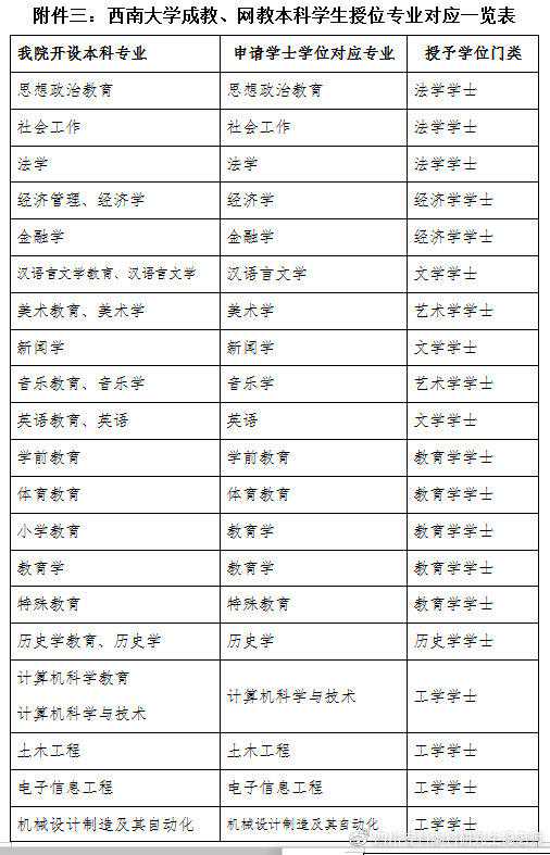 ④符合《西南大学授予高等学历继续教育本科毕业生学士学位实施细则(修订)》者可以授予成人高等教育学士学位。