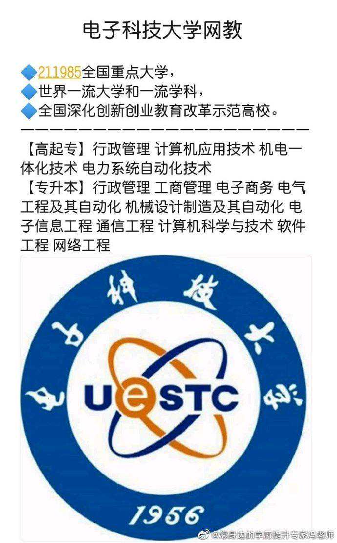 中华人民共和国教育部直属,由教育部、工业和信息化部、四川省和成都市共建。位列”世界一流大学和一流学科“、“985工程”、“211工程”,入选2011计划、111计划、卓越工程师教育培养计划、国家建设高水平大学公派研究生项目、中国政府奖学金来华留学生接收院校、全国深化创新创业教育改革示范高校,两电一邮成员。是一所完整覆盖整个电子类学科,以电子信息科学技术为核心,以工为主,理工渗透,理、工、管、文、医协调发展的多科性研究型全国重点大学。