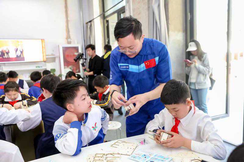 走进活动体验区,学生们纷纷打卡各种航天科技体验项目。在卫星模型DIY区,学生们自主研究组装小卫星模型,小模型承载大梦想;在航天主题绘画区,科技活动中心美术小组的9名学生正在绘制航天主题长卷,在他们的笔下,浩瀚星空中人造卫星、飞船火箭、宇航员栩栩如生、跃然纸上。