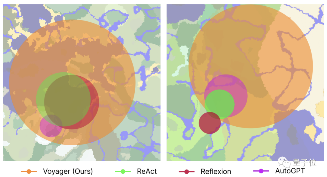 在地图探索距离上,Voyager达到了其他AI玩家的2.3倍。