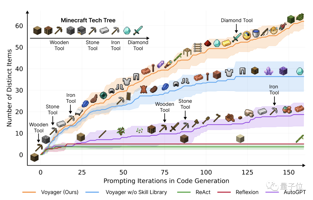 英伟达开发最新方法Voyager,在游戏中点亮科技树的速度是此前方法的15.3倍,同时获得的独特物品是此前的3.3倍,探索范围是2.3倍。