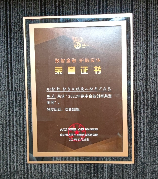 360数科荣获“2022数字金融创新典型案例”