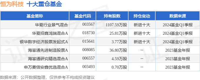 重仓恒为科技的前十大基金见下表: