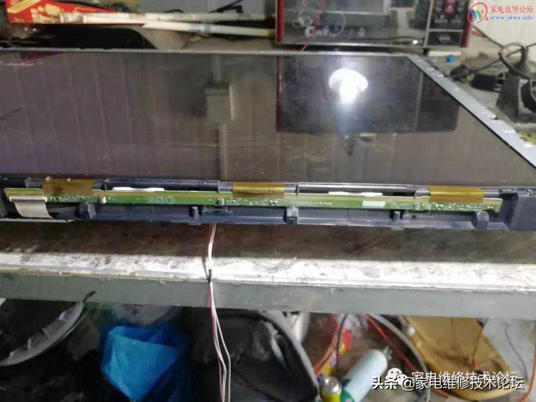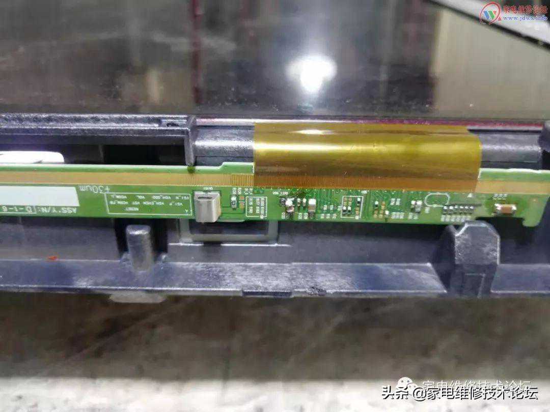 检修:通电开机灰屏有背光,按键遥控正常。怀疑屏的问题,此机屏逻辑板为LGL470EUN-SEF13D60HZ,测得VIN:12V,VGH:0V,VGL:-4.9V,HVDD:0V,VDD:0V,电压异常,表打阻值VDD对地阻值为0,断到屏体FPC线,测VDD不再短路,由此判断屏体故障,拆屏测边板上每一路滤波电容发现有一电容C121对地短路,更换此电容,通电故障排除。