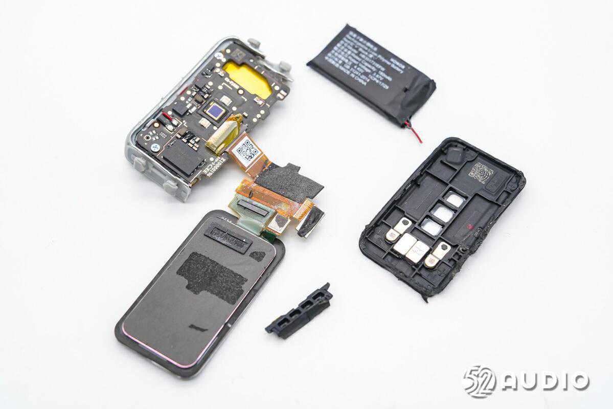 内部结构配置方面,包括了上层屏幕,中间电池和下层主板三部分。内置电池容量180mAh,电压3.87V,由ATL东莞新能源提供;主控芯片采用了AmbiqMicro公司的Apollo3BluePlus(AMA3B)MCU,集成浮点单元(FPU)和TurboSPOT™技术,在提升了ArmCortex-M4F内核的计算能力的同时大大降低了实际运行功耗。