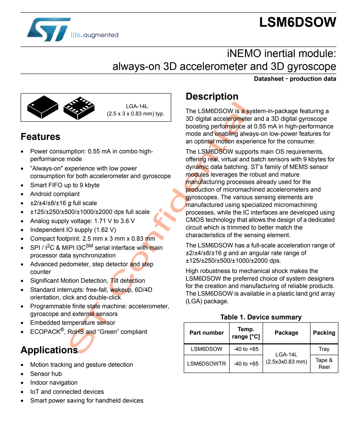 ST意法半导体LSM6DSOWTR传感器,一款支持状态机的6轴传感器,提供更丰富的交互设计补充,内置状态机支持抬腕亮屏,运动数据追踪等功能。