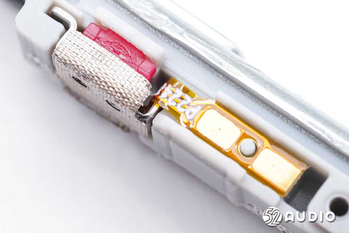 塑料件另外一侧蓝牙天线与主板连接的触点特写。
