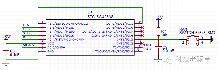单片机我选择SOP16封装的STC15W408AS,这个单片机内部有比较器,可以用来给正弦波整形。自带的捕获功能,专门用来测量脉冲信号,可以减少代码量。(STC15W408AS每个售价2.8元左右。)