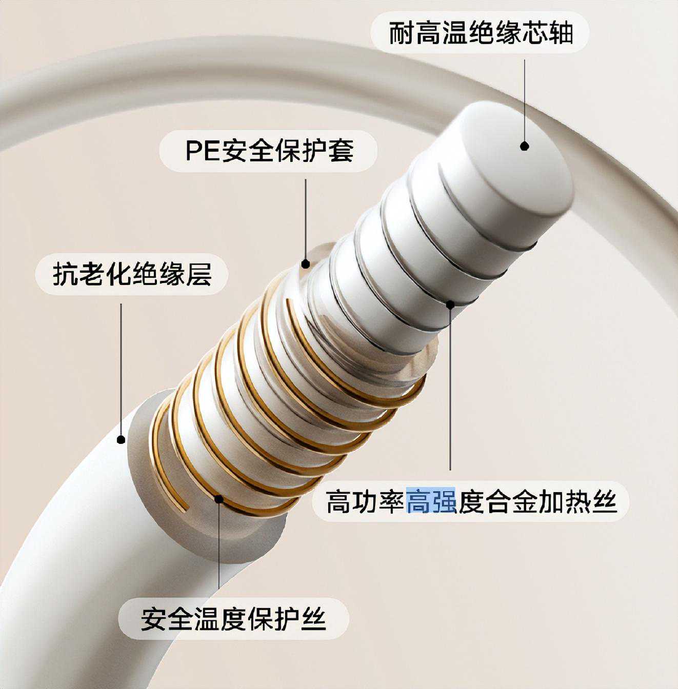 传统的电热毯电线的保护很差,很容易就会断裂,影响使用,这款电热毯针对这一属性做了高强度的保护,最外层由抗老化绝缘层,可以满足长时间的使用,而内部包含了PE安全保护套盒耐高温绝缘芯轴,对线路进一度的保护。