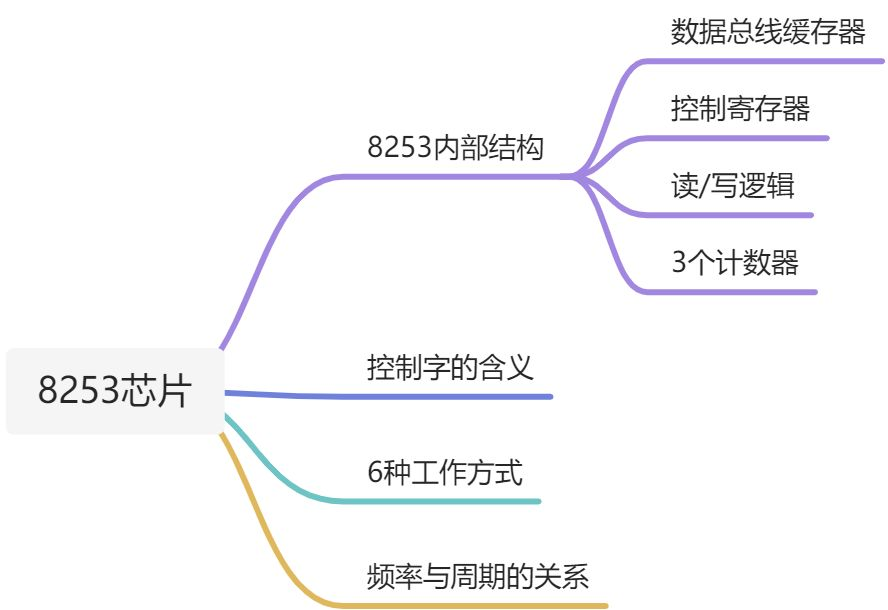 8253有3个计数器通道,计数器0,计数器1.计数器2,每个计数器都由16位锁存寄存器和一个16位减1寄存器组成。