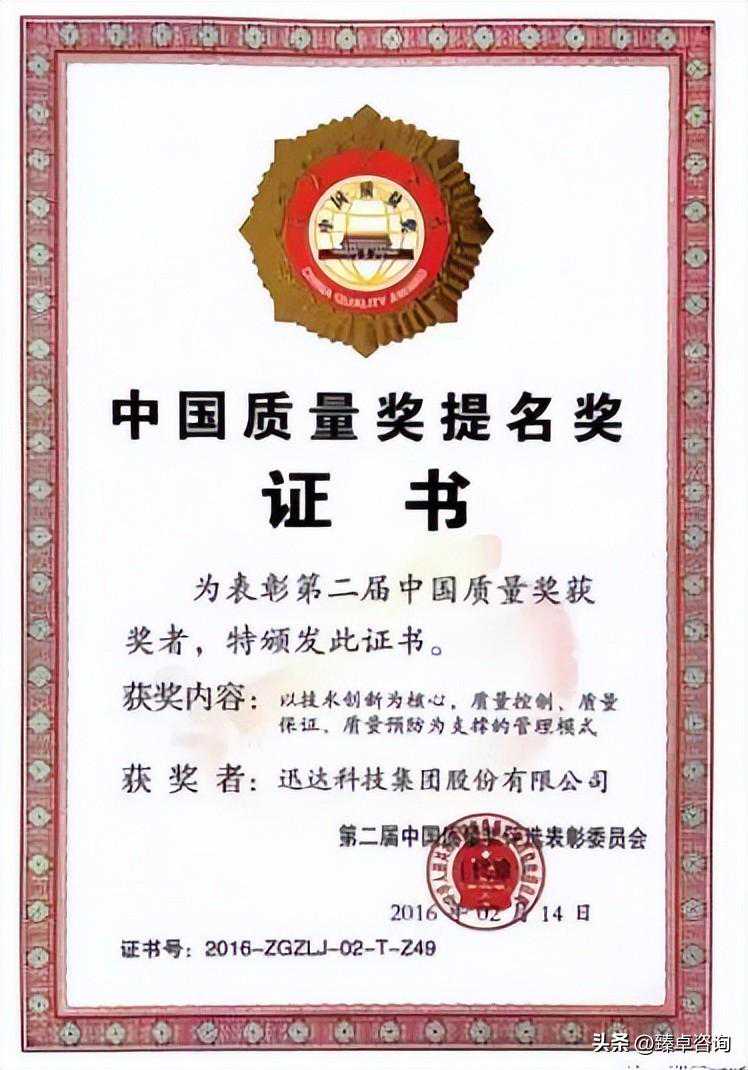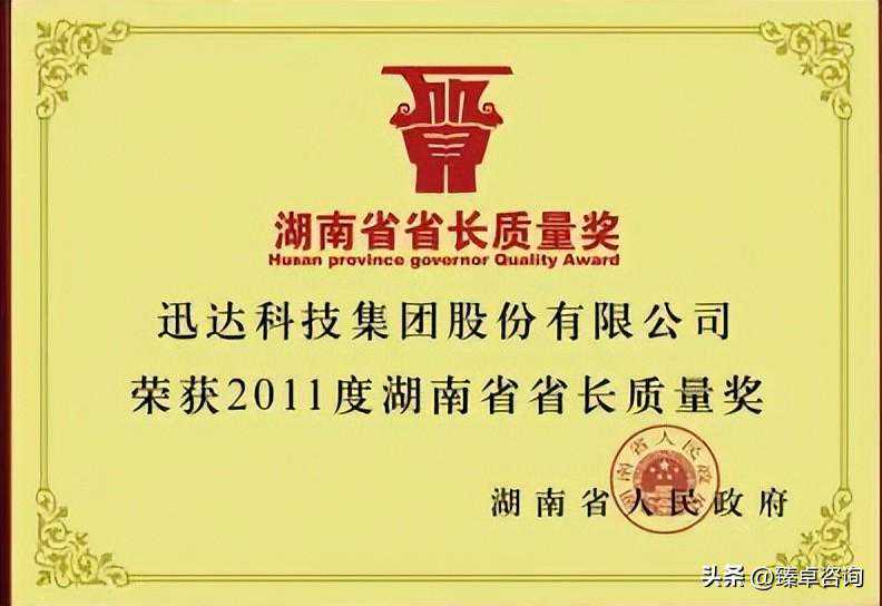 迅达集团荣获第二届中国质量奖提名奖、湖南省省长质量奖、产品质量监督抽查连续六年合格企业。公司实现了在质量管理中的自我突破。
